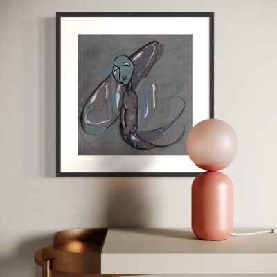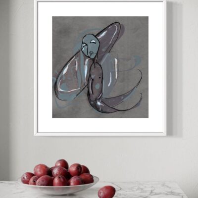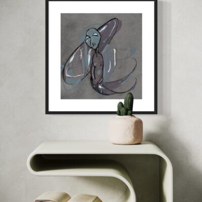 Disappointed (Once More) explores the tension between weariness and endurance. The figure hovers in space, suspended between hope and resignation, its abstracted wings suggesting both burden and release. Subdued hues of blue and grey emphasize introspection over spectacle, inviting viewers into a meditative emotional space.
