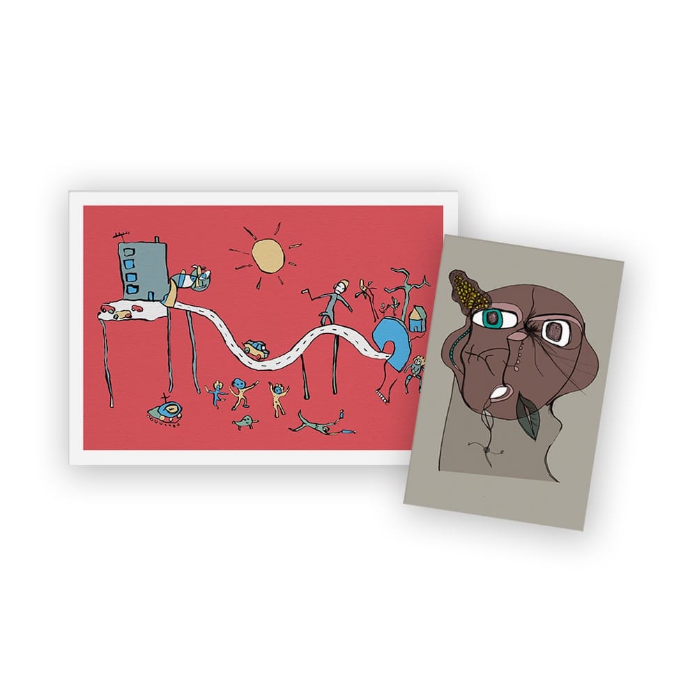 A colourful and quirky duo from Tero Puha’s drawing-based works — combining playfulness, surreal characters and a touch of absurd everyday humour.