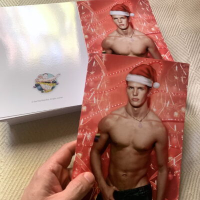 A bold and playful holiday card from Tero Puha’s Candy Boy Box series — where pop culture meets queer sensuality and humor.